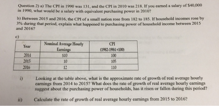 Solved The Cpi In 1990 Was 131 And The Cpi In 2010 Was 218 Chegg Com